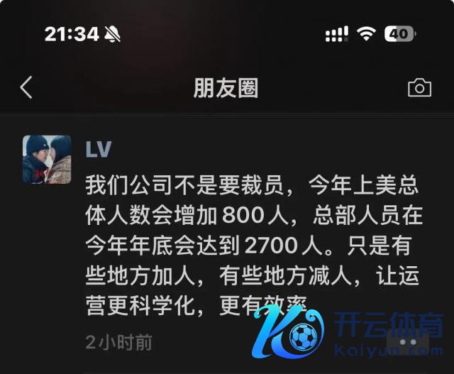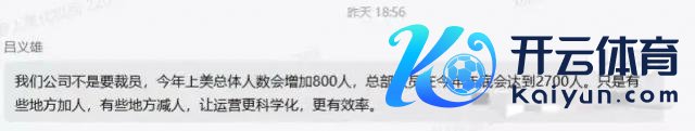 对此,当天吕义雄在一又友圈发文汇报此事称,公司并非要裁人,本年上好意思总体东谈主数会加多 800 东谈主,总部东谈主员在本年年底会达到 2700 东谈主。"仅仅有些地点加东谈主,有些地点减东谈主,让运营更科学化,更有后果。"