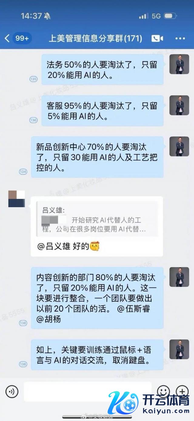 三言科技 2 月 7 日音信,昨日开云体育,一张上好意思股份创举东谈主吕义雄在责任群部署"裁人筹谋"的聊天记载在网娴雅传。