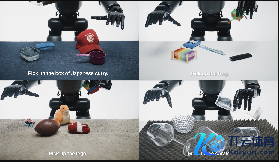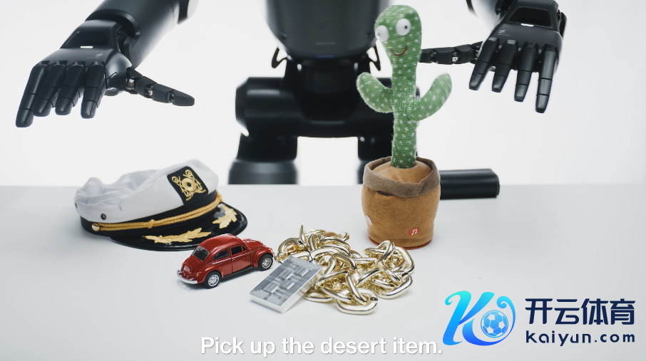 手脚这项科技残害的恶果,搭载Helix的机器东说念主当今不错凭证当然谈话辅导,识别并拾取确实扫数的微型家居物品,包括机器东说念主从未见过的千千万万物品。在公司给出的案例中,机器东说念主在经受“提起阿谁仙东说念主掌”、“提起沙漠里的东西”时,齐能遴荐最接近玩物的手,奏效从一堆物品中拎出仙东说念主掌玩物。