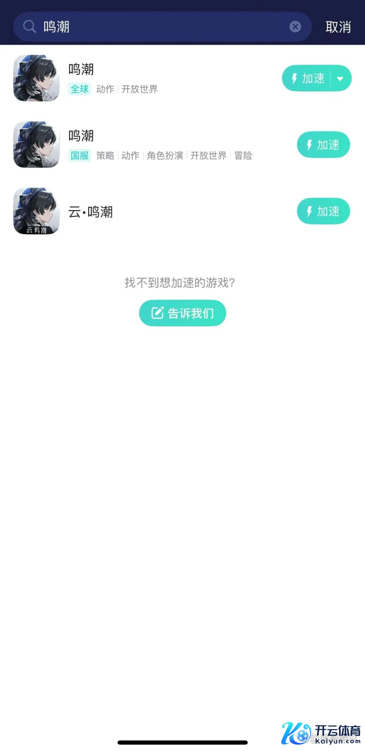 在加快器搜索栏输入“鸣潮”,选定对应游戏