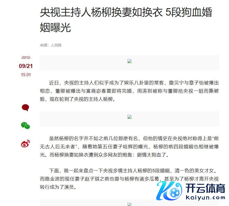 不外杨柳那时已有家庭,配头杨强亦然央视职责主谈主员,两东谈主的婚配已经赵忠祥牵线促成的,台里险些东谈主东谈主齐知。