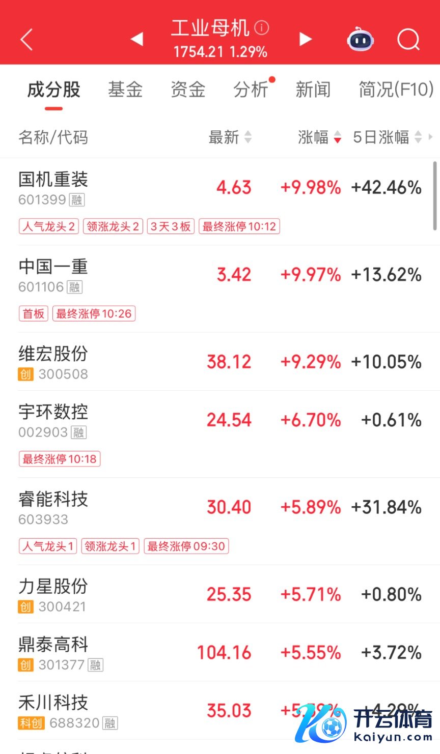 早盘开云体育,工业母机观念触动反弹,中国一重直线涨停。国机重装此前封板,维宏股份、宇环数控、睿能科技、力星股份等跟涨。