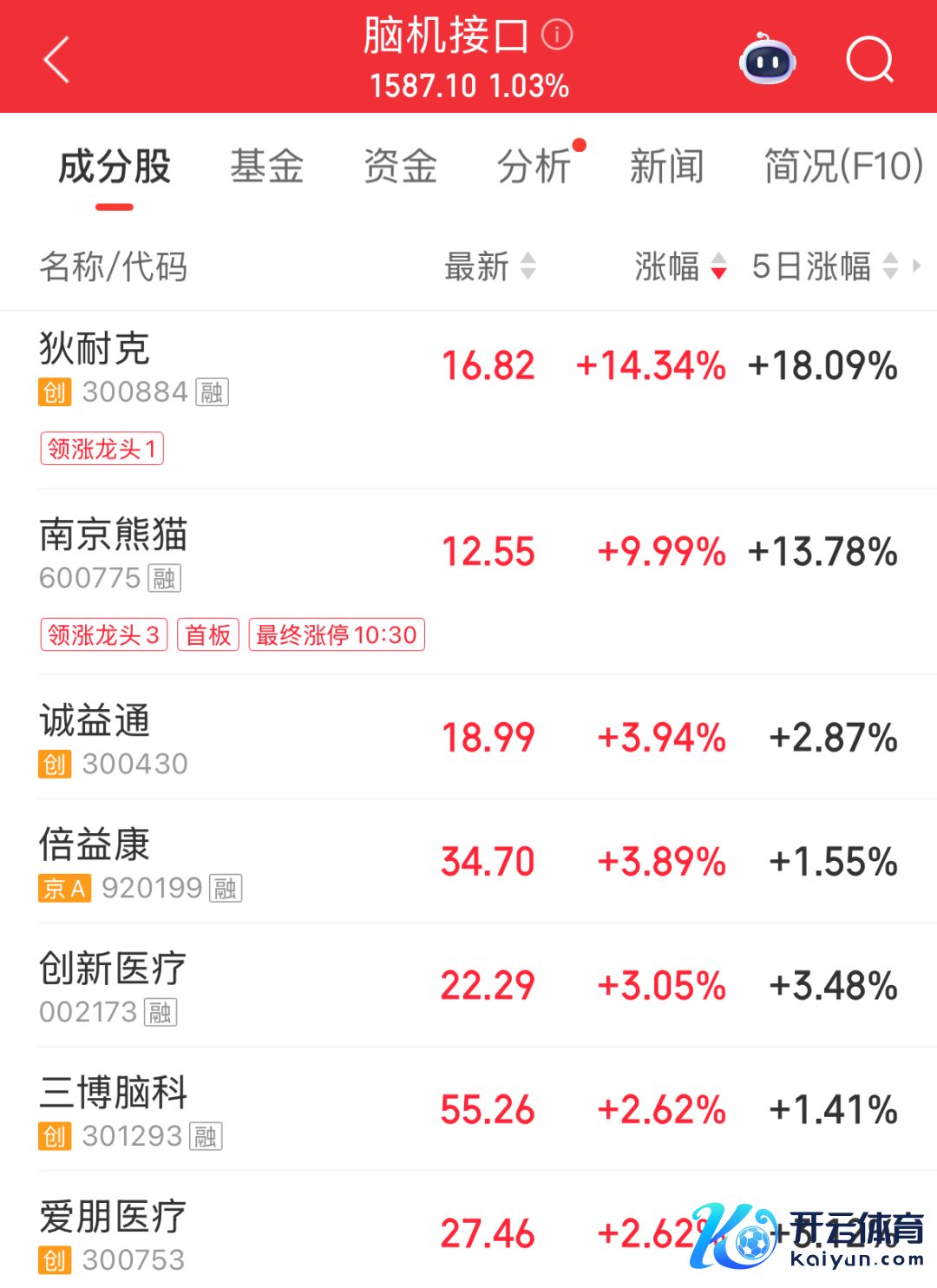 此外,脑机接口观念盘中异动拉升开云体育,南京熊猫直线涨停,狄耐克涨超14%,诚益通、倍益康、改革医疗等跟涨。音问面上,12月4日至5日,以“脑联天下智汇上海”为主题的2025脑机接口大会在上海举行。